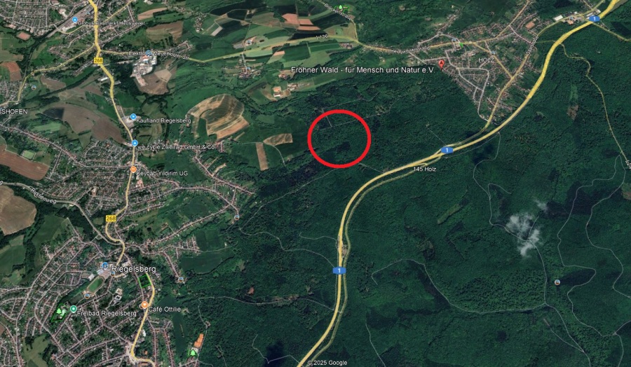 Konkret soll es dem Vernehmen nach um vorerst (!) 3-4 Anlagen (ungefährer Standort der Anlagen ist rot umkreist) gehen, wobei davon auszugehen ist, dass SaarForst mit seinem südlich in Richtung A1 und Riegelsberg gelegenen Teil des Fröhner Waldes zur Sanierung seiner maroden Finanzen in dem dann mit Windkraft vorbelasteten Gebiet recht schnell mit weiteren Anlagen nachziehen wird. Die Pachtangebote der Windkraft-Projektierer sind einfach zu verlockend und bewegen sich in astronomischen Höhen.